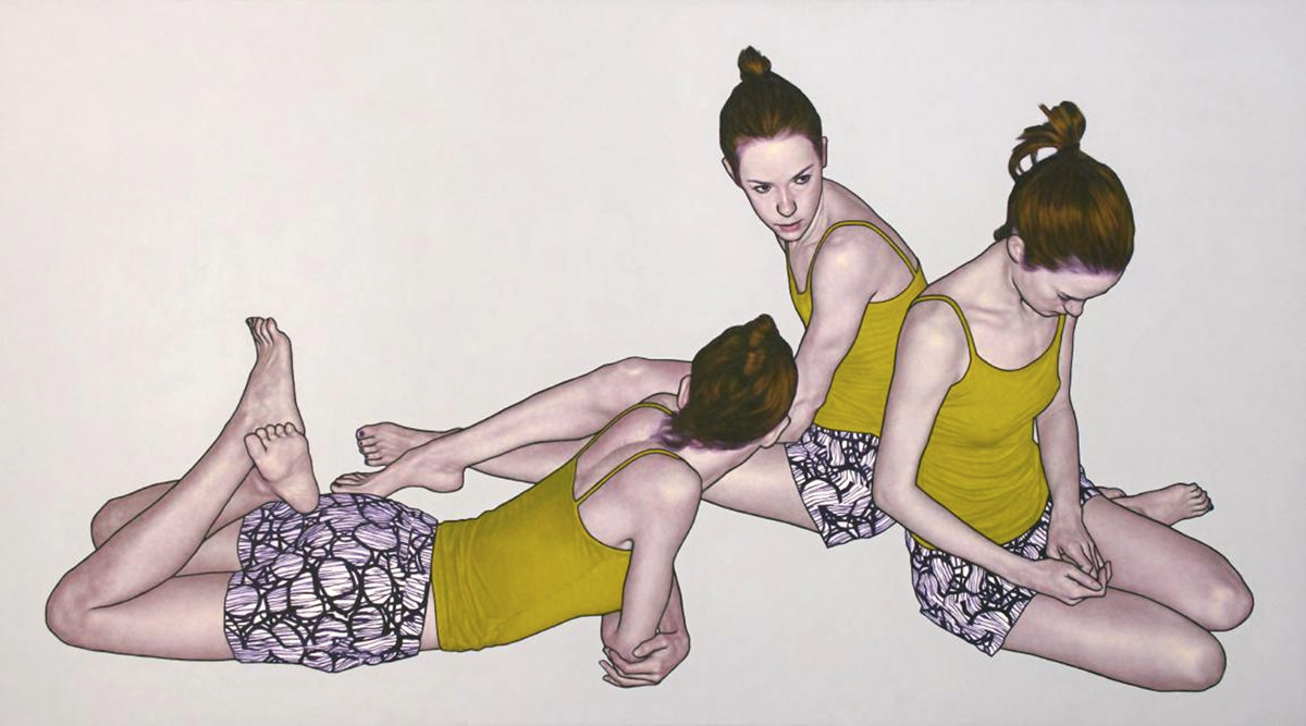 Questo il richiamo di “millenovecentoventinove” di Giuseppe Biguzzi. Ma in queste opere non v’è traccia della numerologia finanziaria che ci si potrebbe aspettare dopo l’iniziale disamina sul senso del titolo della mostra. C’è invece il corpo, o meglio i corpi che vivono nello spazio delle tele. Corpi che si isolano da tutto il resto, o che forse sono il resto di ciò che era il corpo. Perché altrimenti nominare l’economia ed esporre corpi? Non sono forse questi tentativi di mostrare il corpo sotto l’effetto della finanziarizzazione del mondo? Se abbiamo divagato sulla crittologia del titolo, non è forse proprio la “Grande Depressione” l’allusione ultima di questi corpi?