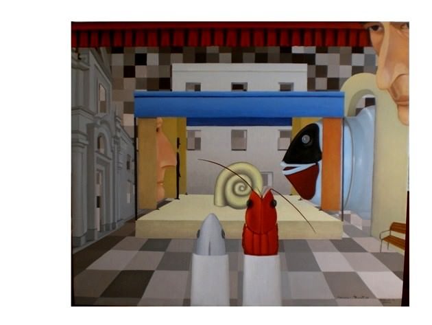 Gli scenari della realtà caprese (piazze, chiese, angoli di paesaggio) e di altri soggetti sono un pretesto per lasciarsi trasportare dal sogno e dall’inconscio, creando suggestive affabulazioni sceniche, composizioni oniriche pervase da una sottile ironia, in uno spazio ermetico e atemporale.