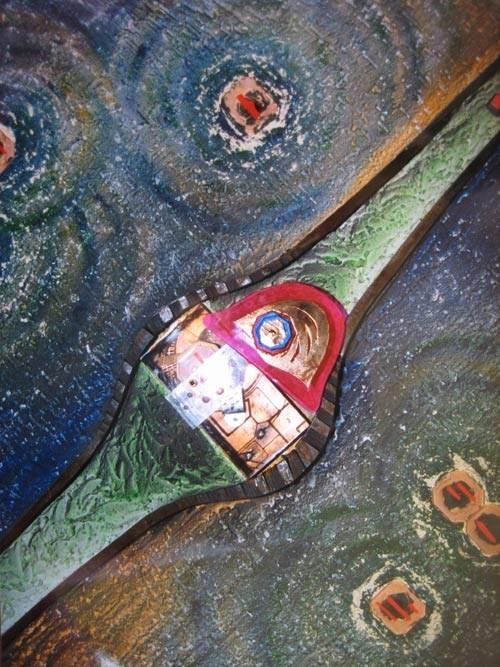 L’artista Giuseppe Callea presenta una decina di sculture sottomarine in tecnica mista ispirate al vicino habitat del Parco Marino, le cui superfici sono riprese nelle pitto-sculture di Corrado Damiani con le sue opere di mari, scogliere, paratie di navi e mixed/media installation, tra le quali di buon auspicio, l’opera In bocca al lupo