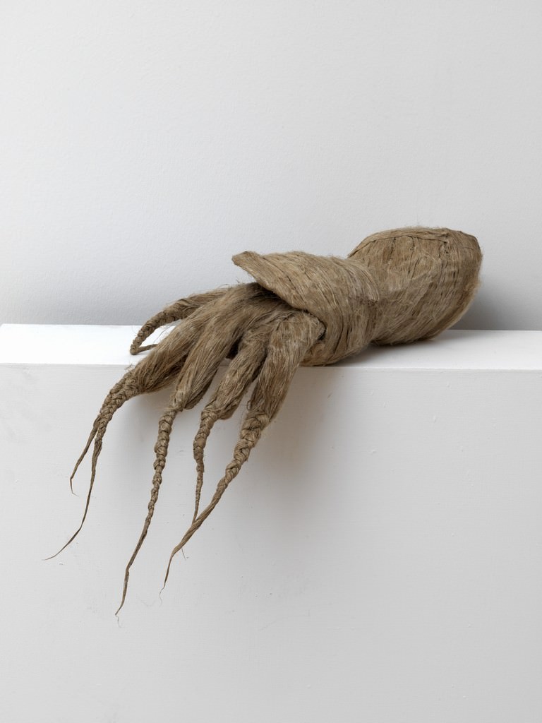 “Qualcosa di giallo” è il titolo della mostra, un prontuario dei temi affrontati da Capitano, tra i quali spicca la dicotomia organico-inorganico.rappresentata appunto dall’accostamento del marmo e della canapa, come in Artigli, dove due zampe di gallina con una pelle di canapa hanno le unghie di marmo.