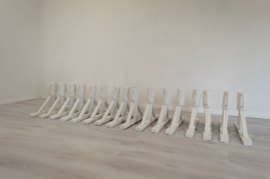 Installazioni ambientali e opere a parete, nate da sperimentazioni materiche inedite, entrano in dialogo con la ripetitività del segno di Capogrossi e la densità plastica di Burri. Il risultato ottenuto è un incontro di espressioni artistiche destabilizzanti che però riesce a raggiungere un rigoroso equilibrio nonostante l’apparente “caos” della proposta espositiva.