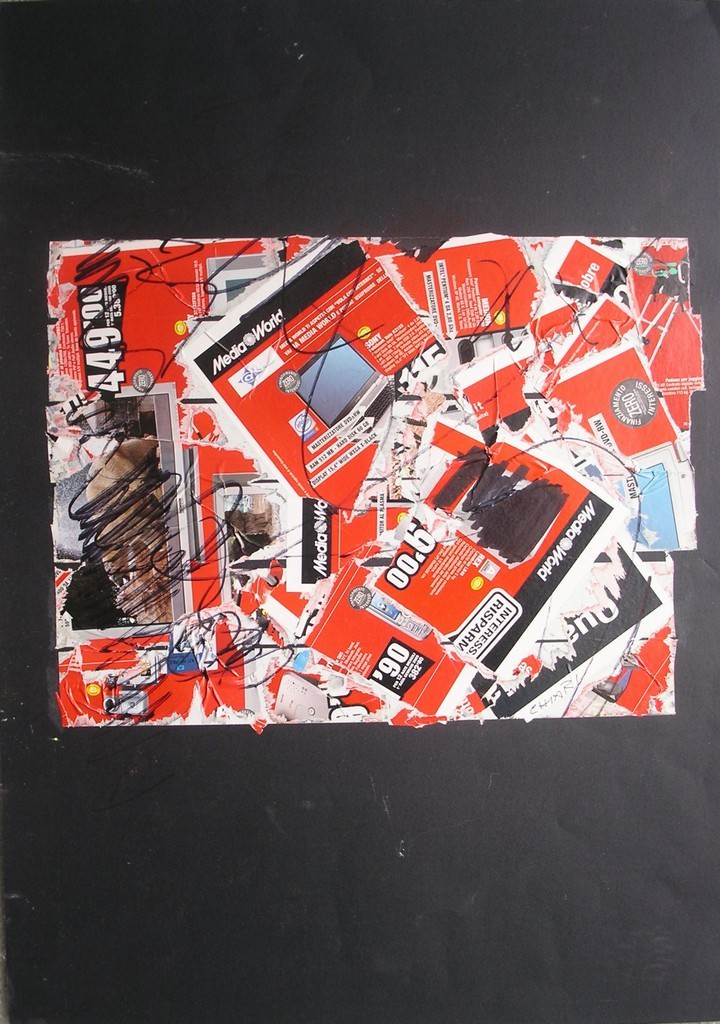 Le carte prodotte dall’artista nei suoi ultimi anni di attività forniscono quasi un resoconto degli snodi principali della sua produzione all’interno del movimento Fluxus: i collages, gli spartiti visivi, i ritratti cinetici, gli statements