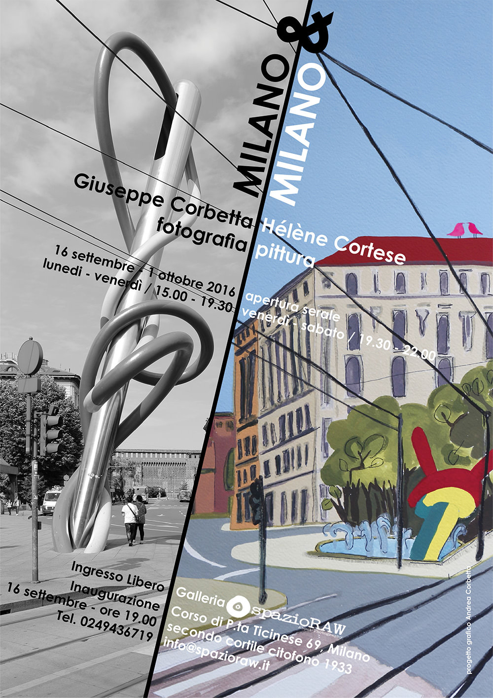 Nata da una collaborazione tra il fotografo Giuseppe Corbetta e la pittrice Hélène Cortese, la mostra è giocata sul contrasto tra colore e sfumature di grigio, tra creatività e rigorosità formale.