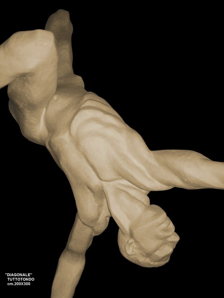 Dal figurativismo astratto delle prime opere in gesso (corpi librati nello spazio che subiscono la geometria del cosmo nelle arterie squadrate o, piuttosto, schiacciati come antichi graffiti risorgenti nella dimensione spazio- temporale a loro ignota), al levigato realismo dei ritratti, dalle effigi della temuta Medusa con il profilo di una giovane donna (da sempre conosciuta) all’espressività dei corpi dalle sagome eterne (i “tronchi” tanto amati dall’artista) in tutto domina, e chiaramente si legge, il rapporto semplice/complesso che ne governa l’opera.