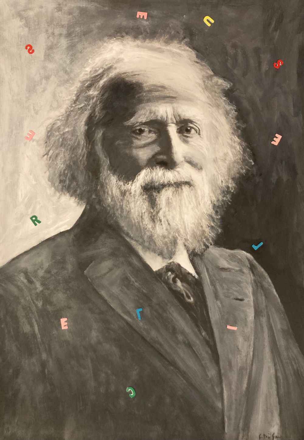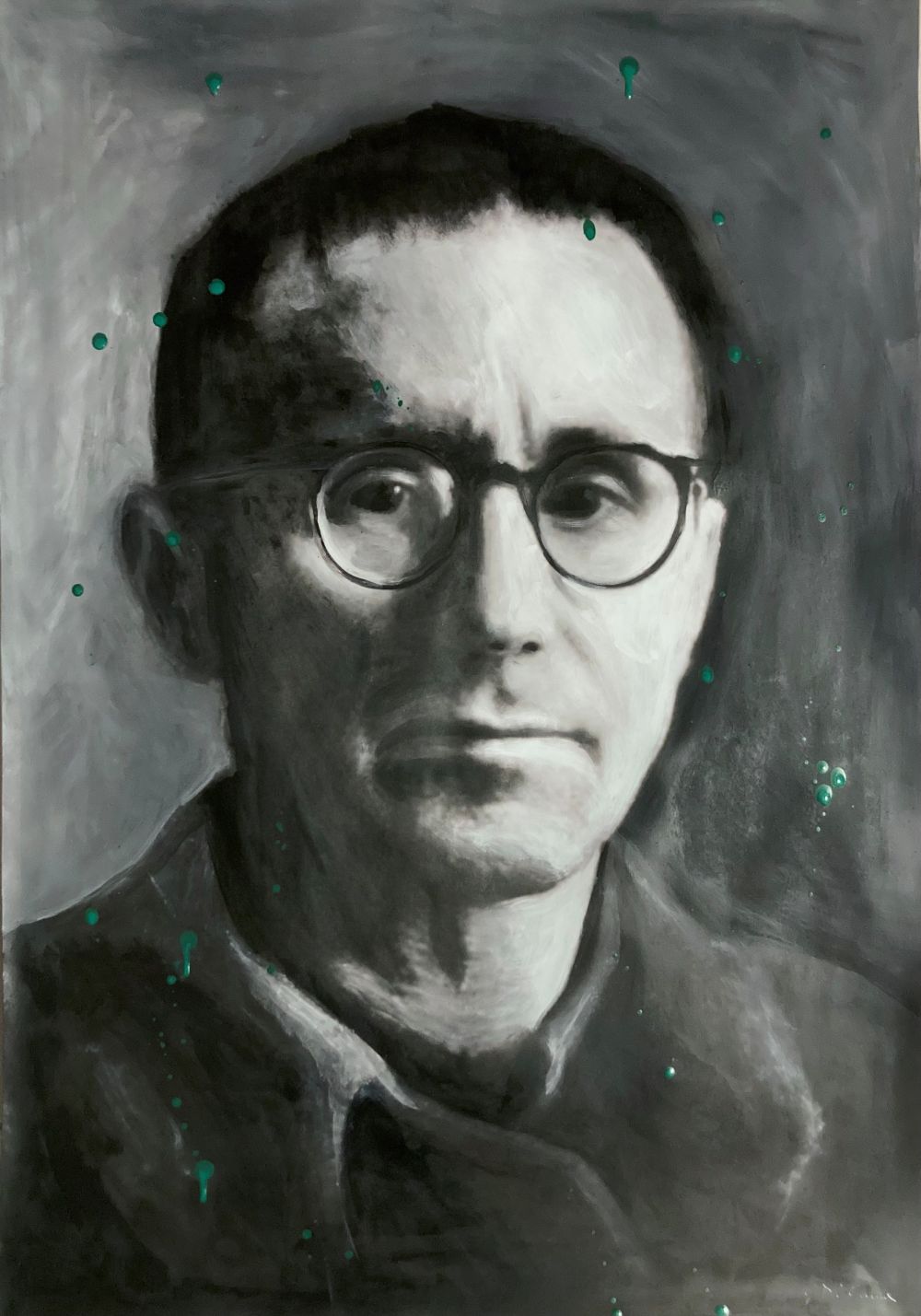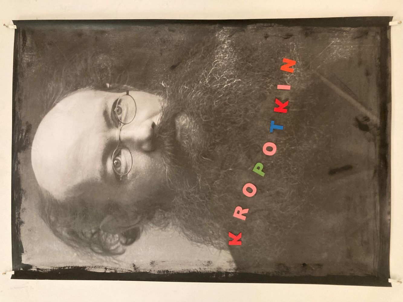 Sulle pareti Di Guida collocherà i ritratti dei suoi maestri, filosofi ed anarchici , quelli tramandati da vecchie foto , su cui l’artista interviene con veloci e significative notazioni, capaci di decontestualizzare per ricondurre ai nostri giorni il personaggio , nella sala un’installazione .