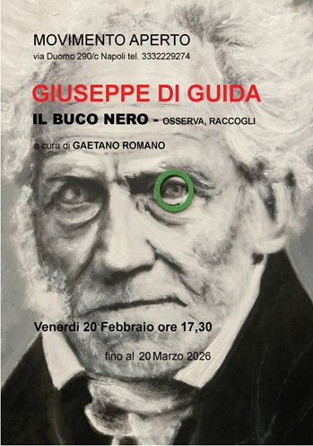Venerdì 20 febbraio 2026 dalle ore 17.30 alle 20.00 presso Movimento Aperto, via Duomo 290/c Napoli si inaugura IL BUCO NERO – OSSERVA RACCOGLI , mostra personale di Giuseppe Di Guida, curata da Gaetano Romano. Resterà aperta fino al 20 marzo, i lunedì ed i martedì ore 17-19 ed i giovedì ore 10.30-12.30.