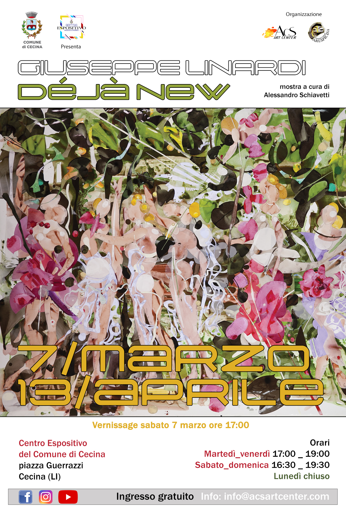 Personale di Giuseppe Linardi promossa dall’Amministrazione Comunale di Cecina, organizzata da ACS Art Center con Aruspicina e a cura di Alessandro Schiavetti. Opere esposte per la prima volta con tecnica nuova per re-interpretazione dei grandi classici della storia dell’arte italiana.