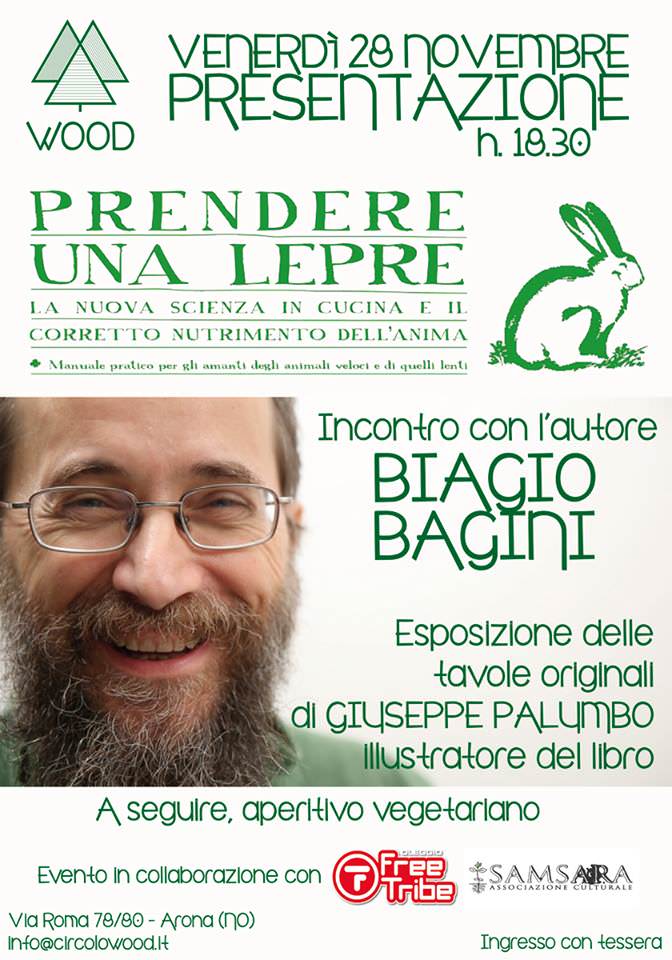 Il libro sarà presentato nella cornice del Circolo Wood, in collaborazione con le associazioni Free Tribe e Samsara, in abbinamento a un aperitivo vegetariano.