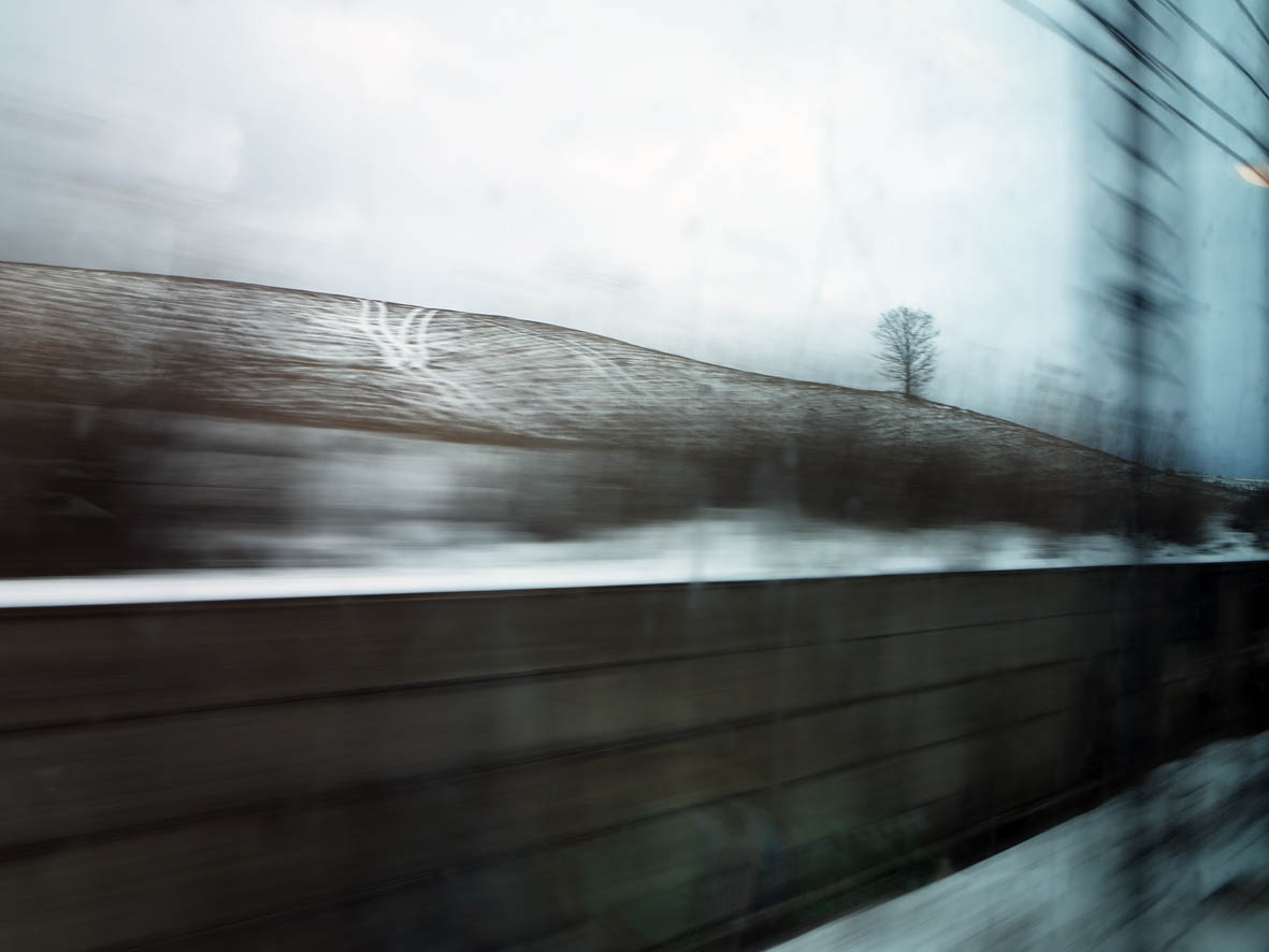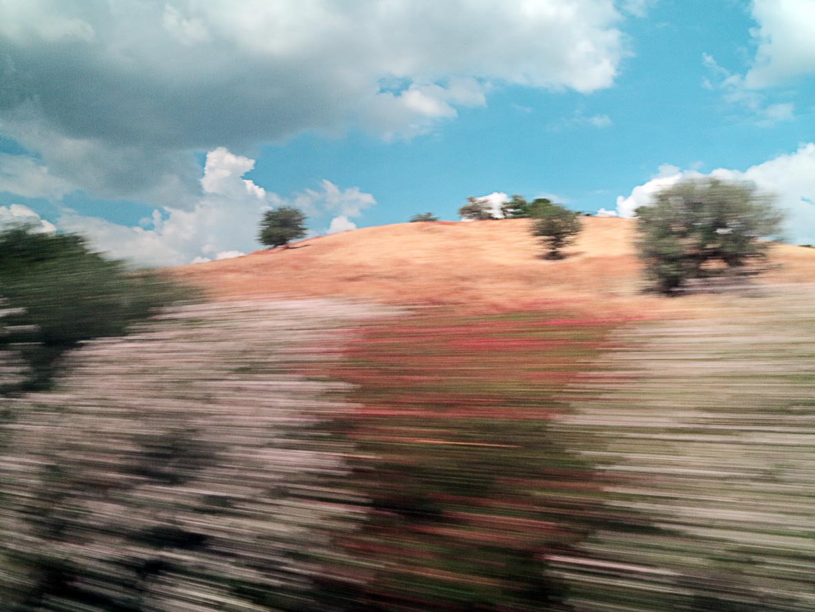 …Un paesaggio visto dinamicamente, che non può essere contemplato con lo spirito del turista, ma che nasce da uno sguardo, per così dire, in fuga…Il dialogo tra il primo piano sfumato e la nitidezza all’orizzonte sottolinea che il nostro vedere è sempre relativo…La certezza della prospettiva ad unico punto di fuga si disgrega e si moltiplicano i dettagli visivi che il nostro sguardo insegue. Non è immediata la riflessione che il paesaggio non è affatto in fuga, e che in realtà è il fotografo con la sua camera che viene “mosso” dal treno che lo ospita… (Vincenzo Velati)