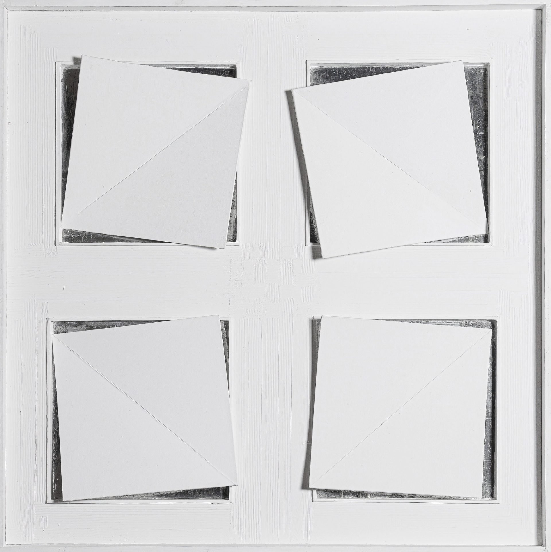 Il bianco segna il bianco e il nero il nero. Direzioni e indicazioni che si estroflettono dal quadrilatero dell’opera tracciando piani e spazi aperti e multidirezionali, dove il vuoto riempie e muove l’esplorazione visiva, emotiva ed esperienziale di chi guarda. Anima con anima, Ponzio ci conduce, con accogliente levità, in un empireo del pensiero dove perfino le parole, ancora non nate, si originano. Il cuore si apre, l’anima esplora e si espande. Si arriva a un punto di partenza.