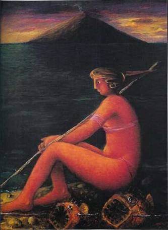 Il volto delle sue donne sono il racconto di questa metamorfosi: hanno il profilo di statua, la rotondità di fate contadine, lo sguardo assente o presente che prende consistenza dal racconto di mito e di esistenza. Il testo del quadro ha, talvolta, i colori foschi e densi dell’attimo che fugge come visione enigmatica che il pittore “attraversa” con il prorpio occhio o altrui, come per esempio con quello di Antonello, il pittore da lui guardato (Vitaldo Conte).