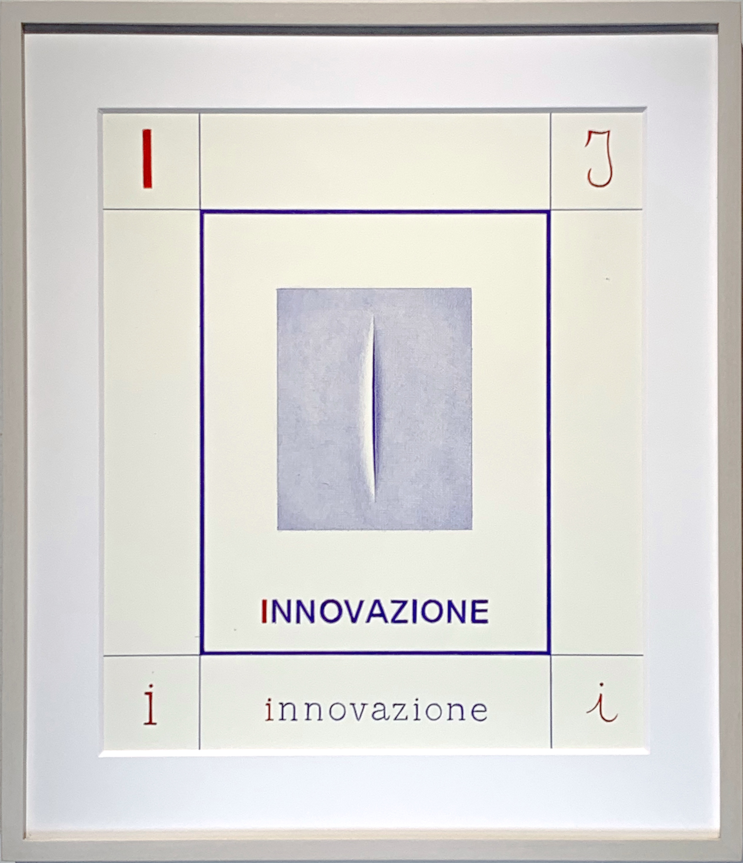 Autenticità, Blu, Creatività, Dedizione, Famiglia - Forza, Esperienza, Gruppo - Generazione, Handmade, Innovazione, Lavoro – Laboratorio, Materia, Natura, Orizzonte, Persone, Qualità, Ricerca, Sassuolo, Tradizione, Unicità, Velocità, Zero sono le parole a che Giuseppe Stampone ha rappresentato visivamente in modo sempre originale alternando ironia a icone pop.