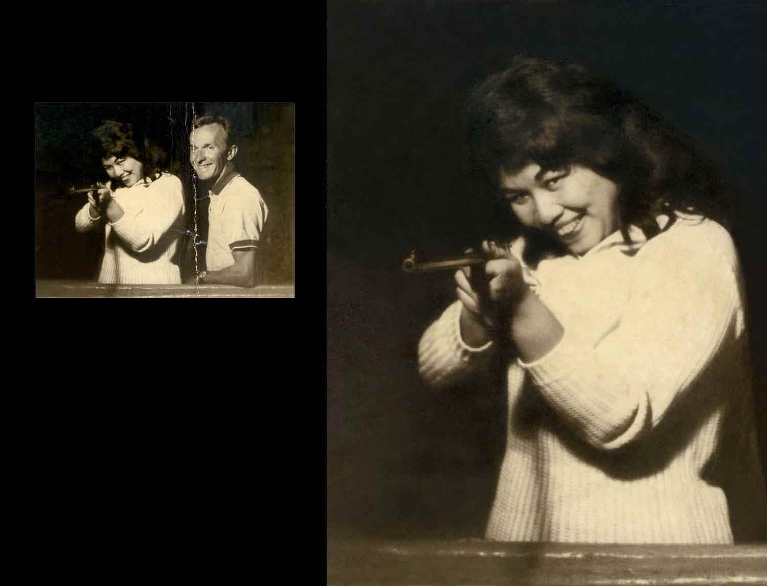 La seconda mostra irrealizzata, dal titolo Remake Remodel - Women in Revolt, comprende l’opera A Collection of Male Inducted Stereotypes: raccolta di cartoline 3d a soggetto erotico, risalenti agli anni Settanta, che compongono un campionario di immagini in cui il corpo della donna è rappresentato come feticcio pronto al consumo. Donne di paesi ed etnie diversi vengono ritratte in pose stereotipate, frutto dello sguardo maschilista e colonialista che permea la cultura visiva dell’Occidente tardocapitalista. Per la stessa mostra era pensato anche il trittico Tribute to LGBTQ Pioneers, basato sull’ingrandimento di cartoline fotografiche degli anni Venti, realizzate con l’uso di finti fondali, all’epoca molto diffusi nelle fiere popolari. In questo caso Tubi presenta immagini dove sono le donne a scegliere le modalità con cui ritrarsi, in coppia e in abiti maschili, sfidando modelli di rappresentazione canonici e soprattutto facendosi interpreti di nuove identità che sfuggono e confliggono con i ruoli dominanti del sistema eteronormativo. A questo corpus di lavori appartiene anche l’ingrandimento di un’altra fotografia trouvée, realizzata anch’essa in una fiera popolare, dove compare una donna che, colpendo con un fucile un bersaglio collegato a un otturatore fotografico, si ritrae nell’atto di sparare con al suo fianco un uomo, presumibilmente il compagno. L’immagine originaria era piegata in modo da nascondere la presenza maschile, come se la donna se ne fosse voluta liberare, azzerandola: la fotografia si trasforma così in una sorta di autoritratto della donna che assume un alto valore simbolico.