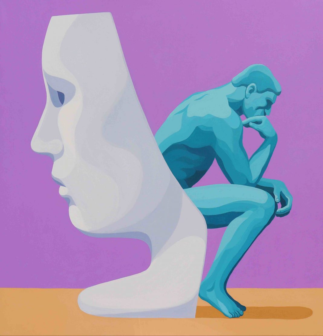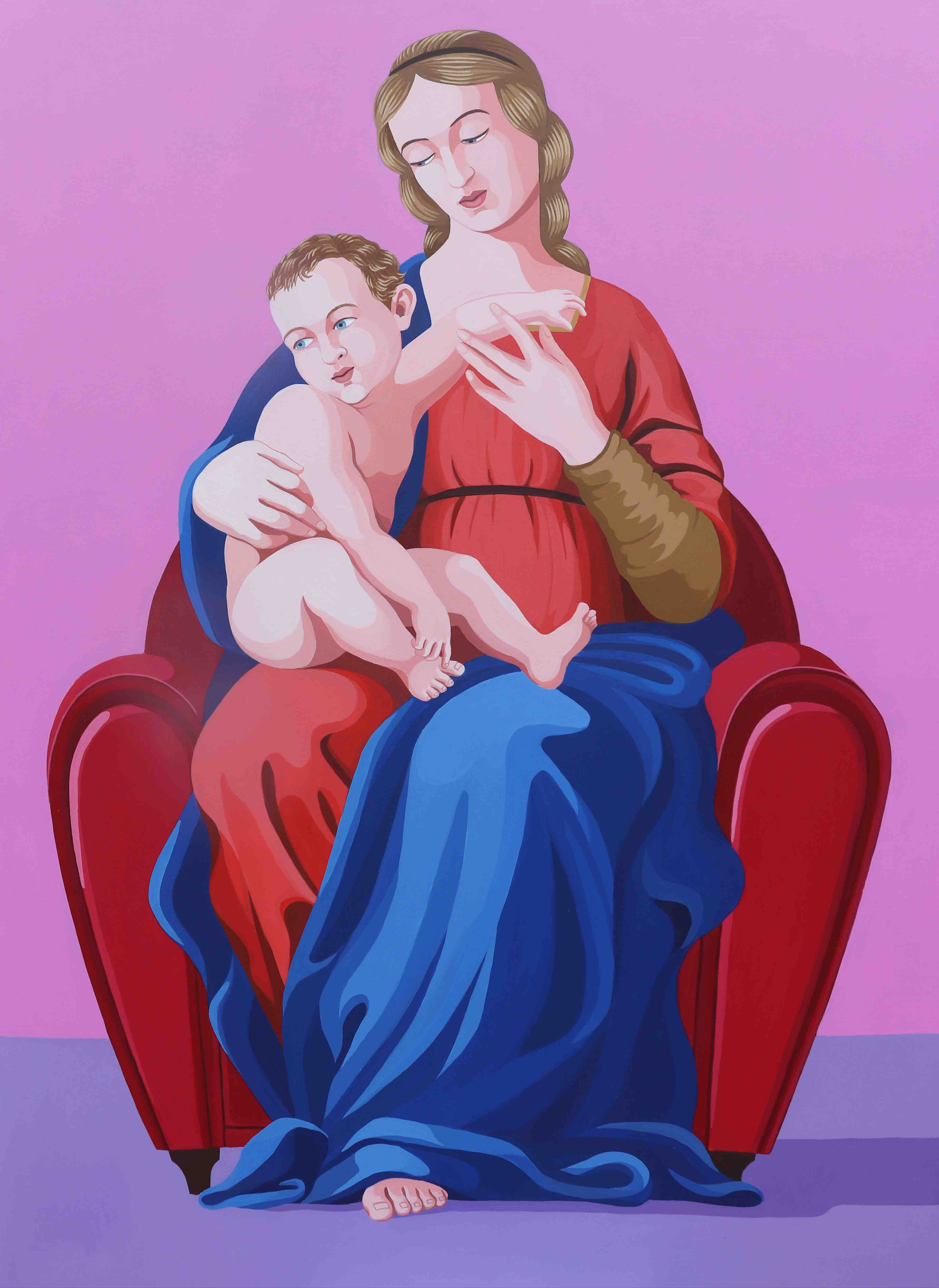 Al dialogo costante tra riferimenti alti e bassi, tra realtà e finzione, tra sacro e profano tipico delle opere di Veneziano, si aggiunge in questa serie di opere che l’artista porta in mostra a Milano, quello più specifico tra arte e design e la lettura può essere duplice: da una parte i personaggi vengono umanizzati ma accostati alla bellezza iconica del design, dall’altra gli oggetti di design sono inseriti in ambientazioni famose della storia dell’arte ma se ne sottolinea l’aspetto funzionale per cui sono stati concepiti.