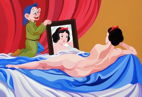 La Rivoluzione d’Agosto è una nuova sortita del terrorista pittorico Giuseppe Veneziano, già noto per aver impiccato Maurizio Cattelan, decapitato Oriana Fallaci e, infine, attentato alla vita di papa Benedetto XVI in una serie di dissacratori ritratti d’attualità. Questa volta l’artista siciliano se la prende con gli ideali politici, religiosi e iconografici che hanno influenzato la cultura occidentale, soffocandola in una morsa di ottuso oscurantismo. Con il solito piglio ironico e scanzonato, Veneziano traccia una mappa della crisi ideologica e spirituale del nostro tempo, sovvertendo il senso ultimo di simboli e icone politiche e religiose con il ricorso ad un immaginario pop e mediatico ipercontemporaneo. Eroine disneyane, dittatori comunisti, supereroi, top model e personaggi biblici si avvicendano in un percorso espositivo che somiglia a un giro sulle montagne russe dell’attualità. Si parte dalla serie di dipinti dedicati ai leader comunisti, in cui la ritrattistica del realismo socialista viene convertita in una suadente iconografia pop. Così, si va dalla psichedelica cristologica del Che Guevara cosmico al fashion victimism di un Mao iperconsumista (con tanto di occhiali da sole firmati Dolce e Gabbana), fino al disimpegno vacanziero del Lenin di La Rivoluzione d’Agosto, opera simbolo dell’intera mostra e manifesto del ridanciano disincanto politico e culturale dell’artista, che accompagna lo spettatore nel tragitto in discesa dal Comunismo al Consumismo. Dalla politica si passa poi alla religione con le tragicomiche riletture di alcune delle più celebri iconografie cristiane. Oltre al Cristo dei palloncini, delicata intrepretazione dell’ascensione del Salvatore, fanno bella mostra di se Le tentazioni di Sant’Antonio, in cui il martire respinge le avance di una procace Jessica Rabbit; Il martirio di Kate Moss, dove la celebre modella subisce il martirio di San Sebastiano; infine La Madonna del Ragno, versione allucinata e straniante di Vergine col bambino, in cui il Cristo infante veste i panni di Spiderman. Gli eroi dei fumetti e dei cartoon sono uno dei temi ricorrenti nella ricerca di Giuseppe Veneziano. Protagonista di Ideali da supermeket, una delle tele più emblematiche della mostra è, infatti, un Superman derelitto, che reca sul petto, quale simbolo di sconfitta, la falce e il martello comunisti. Chiude la mostra l’installazione intitolata Biancaneve allo specchio, citazione della celebre Venere allo specchio di Velasquez che l’artista trasforma in parafrasi erotico-favolistica.