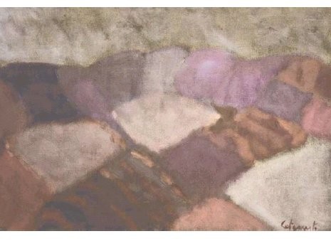 Olii su tela di iuta e di sacco dove, in singolari e pulsanti spazi, sono portate in scena l’esperienza percettiva e la speculazione maieutica inerenti al fluire del tempo, all’attimo fuggente ed irripetibile