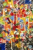Il rimando è sicuramente alla Pop Art, ma la vertiginosa esuberanza cromatica rientra nella caleidoscopica fusione di temi, nell’inestricabile intreccio di colori e forme che il Sud America suggerisce, nel vigore emotivo e nella vivacità di ritmo compositivo.