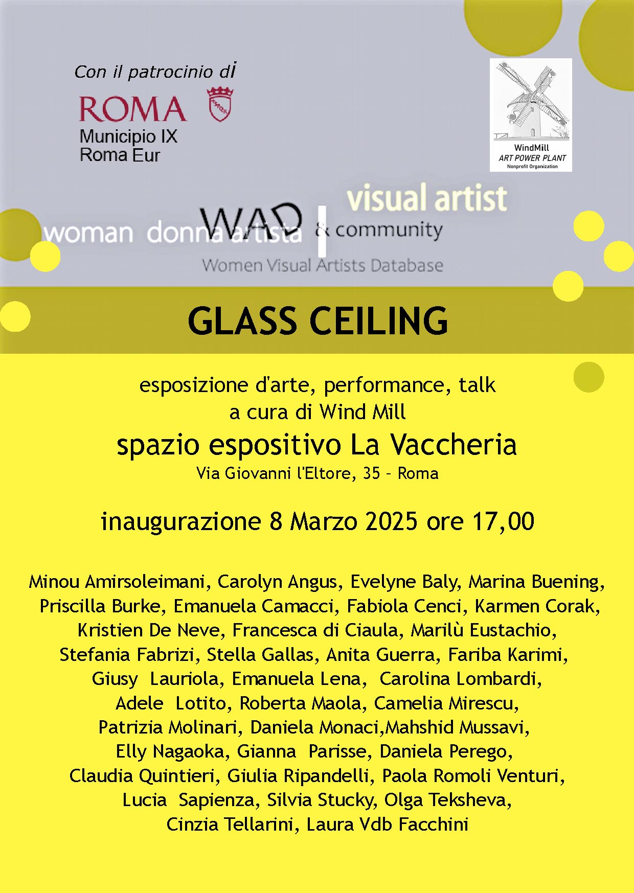 In occasione della Giornata Internazionale per i diritti delle donne, si inaugura la mostra GLASS CEILING, 35 artiste del Women Visual Artists Database, progetto della no profit Wind Mill di Roma,