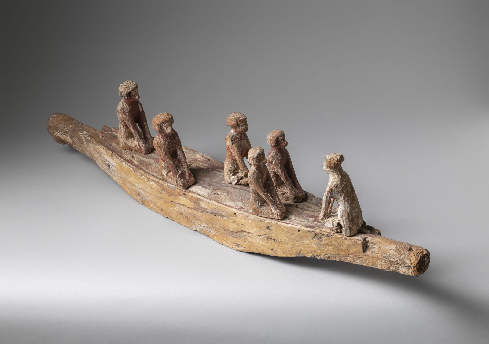 Tra i reperti in mostra, un tipico modellino di imbarcazione dei corredi funerari del Primo Periodo Intermedio (2118 - 1980 a.C.), in legno stuccato e dipinto, decorato con la coppia di occhi udjat a protezione dello scavo. Queste imbarcazioni in genere rappresentano il viaggio del defunto verso la città sacra di Abido. Dalla Galleria della Cultura materiale del Museo Egizio proviene invece il set completo di vasi canopi in alabastro di Ptahhotep, vissuto durante il Terzo Periodo Intermedio (1076 - 722 a.C.). I 4 vasi sono chiusi da coperchi che ritraggono i Figli di Horus, con teste zoomorfe, utilizzati per conservare separatamente gli organi del defunto.