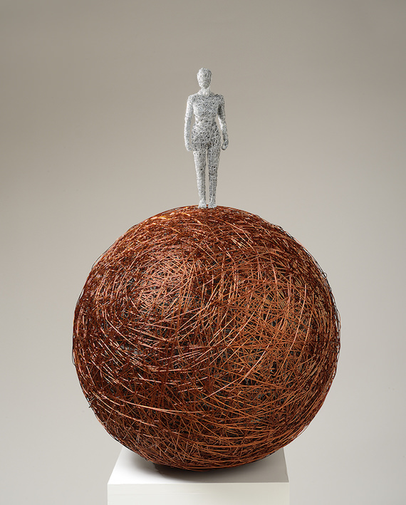 Fabrizio Pozzoli abile mano che intreccia fili metallici che creano figure perfette nella loro plasticità, anche se in movimento, in grado di mantenere l’equilibrio nonostante il mondo e l’ambiente intorno a loro tendano all’entropia.