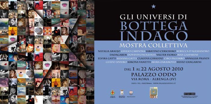 Dal 1 al 22 agosto 2010, l’atelier Bottega Indaco a coronamento di tre personali, presenta ad Albenga, presso le sale del terzo piano di Palazzo Oddo, la mostra collettiva di pittura “Gli universi di Bottega Indaco”. L’esposizione, realizzata in collaborazione con il Comune di Albenga e la Palazzo Oddo srl, vedrà protagonisti i caleidoscopici artisti: Natalia Araujo, Giulio Cardona, Sabatino Cersosimo, Rebecca d’Alessandro, Dadagabem, Dovevivonolefate, Valter Fiorio, Max Gasparini, Elvira Gatti, Silvana Gatti, Claudia Giraudo, Ciro Palumbo, Annalisa Prandi, Guido Siviero, Simona Vanetti, Akira Zakamoto e Silvio Zangarini.