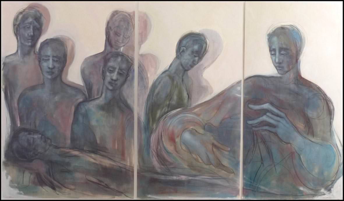 Ne risultano corpi tracciati di getto sulla superficie, in modo da poter lasciare in evidenza le fasi di realizzazione della figura, corpi quindi essenziali e “trasparenti”, sospesi ad “Altro”, senza più né dimora né tempo.
