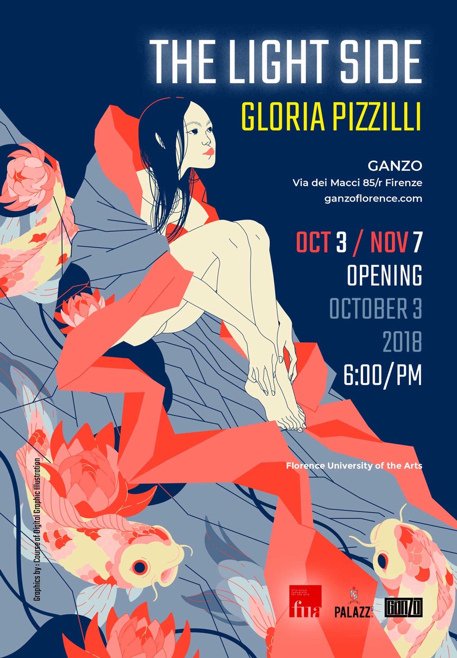 Gloria Pizzilli inaugurerà mercoledì 3 ottobre alle 18, durante l’AperiART, aperitivo del mercoledì al Ganzo, in via de’ Macci 85r, la mostra per lei organizzata dagli studenti FUA, intitolata The Light Side.