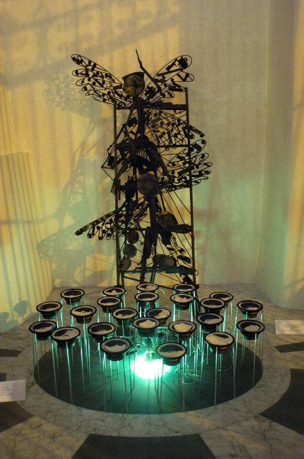 Le sue sculture giocano sul contrasto guerra/morte e arte/vita, nel