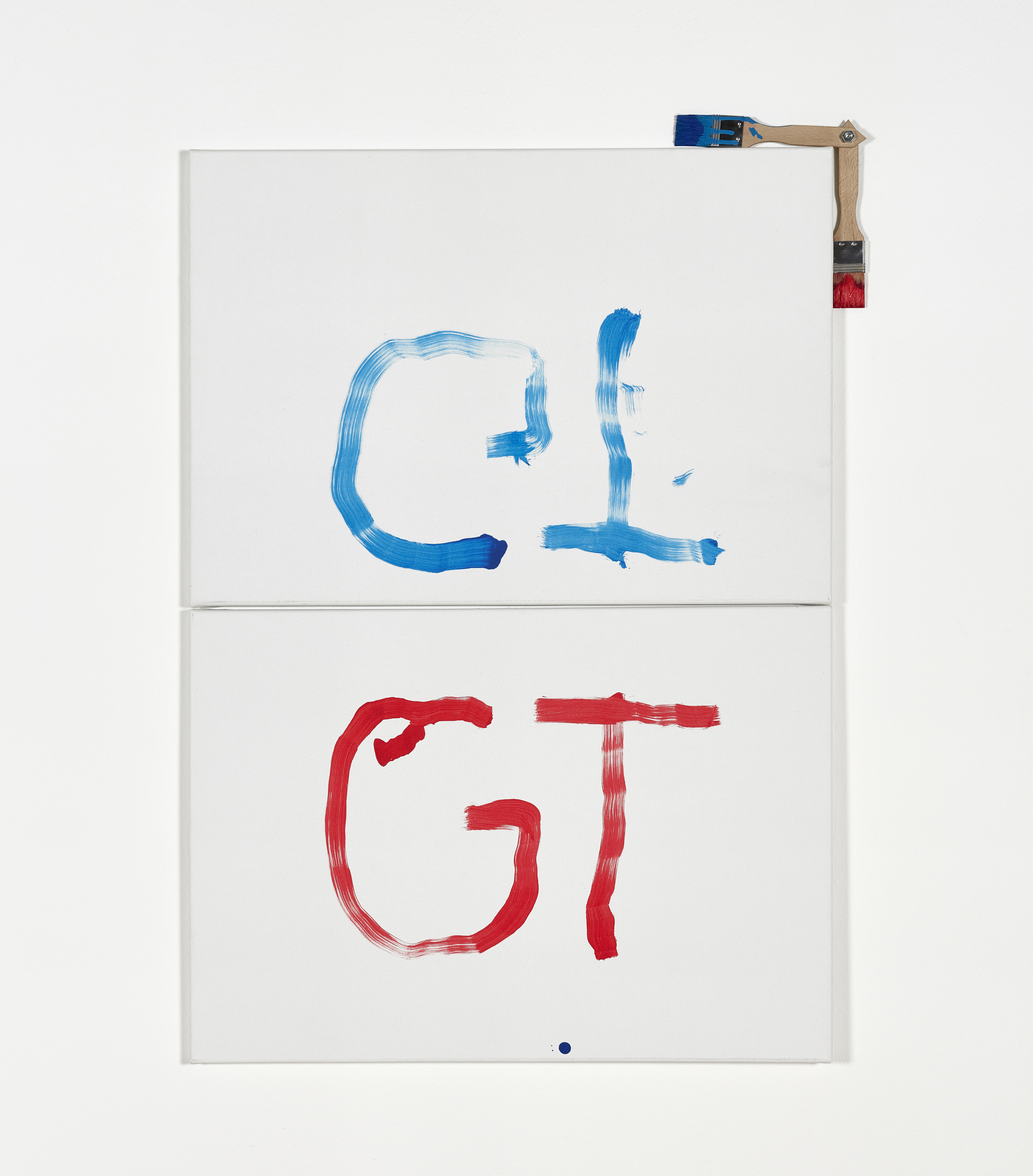 La mostra delinea il percorso dell’artista attraverso un corposo numero di opere su tela che va dagli storici e più noti Sunday Paintings (1974) attraverso gli Hand-held painting, i Painted from side, i Jazz brush painting per fare qualche esempio e così via fino ai più recenti come Easel Paintings (2016-2018) o Sketch for sculpture (2019). In questi ultimi, Trbuljak richiama la costruzione formale della natura morta come la si trova tipicamente attraverso la storia dell’arte, creando composizioni scultoree con gli strumenti tradizionali della pittura.