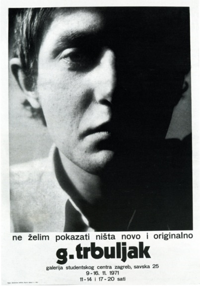 Artista Concettuale tra i più interessanti, Trbuljak è convinto da subito che una ricerca basata su convenzioni stilistiche tradizionali non avrebbe portato ad alcun risultato cosicchè, nel 1971, espone allo Student Centre Gallery di Zagabria un poster con la scritta “Non intendo esporre nulla di nuovo e originale”. Trbuljak non formula paradigmi, non propone il suo lavoro come nuova alternativa formale ma, semplicemente quanto brillantemente, pone l’accento sul dilemma dell’artista, che nello stesso momento accetta e rifiuta tutti gli aspetti caratteristici di qualsiasi opera egli possa realizzare. Tra gli anni Settanta e Ottanta, in una scena artistica di profondi cambiamenti, Trbuljak impersona l’artista in crisi, scettico, consapevole, disilluso, “più artista per quello che non fa piuttosto che per quello che fa”.