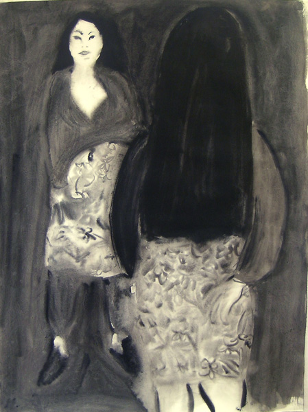l’arte di Gosia Turzeniecka in dialogo con lo spazio di 515 : soggetti femminili e una piccola antologia di altri soggetti selezionati dalla curatrice Olga Gambari. Sono acquerelli e chine cui si accompagnano sculture in cartapesta realizzate per questa occasione.