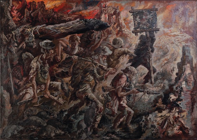 Ma, la caricatura è l’unico modo per questi artisti di descrivere il “mostruoso verosimile”, un mondo difforme e alla rovescia, rendendo interiore ciò che è esteriore e spostando sopra ciò che è sotto: un capovolgimento carnevalesco della realtà in cui satira e dramma convivono.