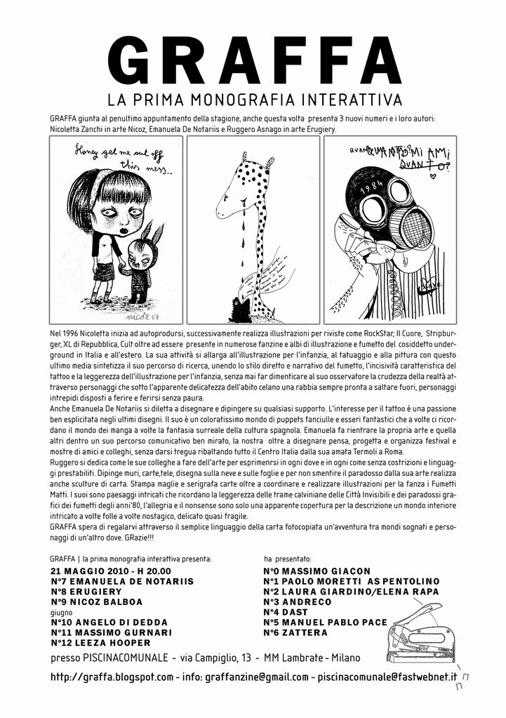 GRAFFA spera di regalarvi attraverso il semplice linguaggio della carta fotocopiata un’avventura tra mondi sognati e personaggi di un'altro dove.