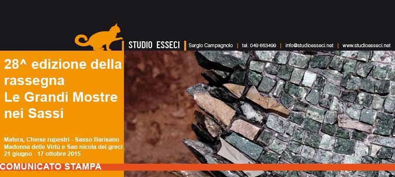 Sabato 20 Giugno alle ore 19.00 presso il complesso rupestre Madonna delle Virtù e San Nicola dei Greci si apre ledizione 2015 delle Grandi Mostre nei Sassi. La rassegna annuale di scultura contemporanea, organizzata dal Circolo La Scaletta, questanno è dedicata al Maestro mosaicista ravennate Marco De Luca, artista di prestigio internazionale, impegnato da quasi 40 anni nello studio dellarte del mosaico. Una ricerca che lo ha condotto a utilizzare la tecnica musiva con un approccio personale e innovativo, nel quale scultura e pittura risultano pienamente coinvolte.