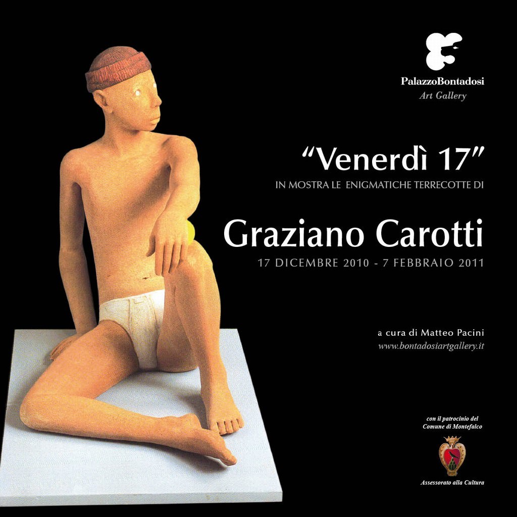 Nei locali della Bontadosi ArtGallery di Montefalco, dal 17 dicembre 2010, saranno in mostra le terrecotte dello scultore cremonese Graziano Carotti. Nato a Cremona il 17 luglio 1946, dopo il diploma di Perito Industriale, si diploma all’accademia di Venezia nel 1971 e completa la sua formazione con frequenze universitarie a carattere umanistico. Nel corso del tempo acquisisce competenze artistiche lavorando come restauratore di dipinti antichi, scenografo, attore e burattinaio. Numerose le partecipazioni a mostre personali e collettive, le fiere nazionali ed internazionali ed i riconoscimenti conferitigli durante la prolifica carriera. L’esposizione, patrocinata dal Comune di Montefalco e curata da Matteo Pacini, responsabile della Bontadosi ArtGallery, sarà visitabile fino al 7 febbraio con ingresso libero tutti i giorni dalle ore 10.00 alle ore 22.00. Al vernissage, che si terrà venerdì 17 dicembre alle ore 18.00, presenzierà l’artista.