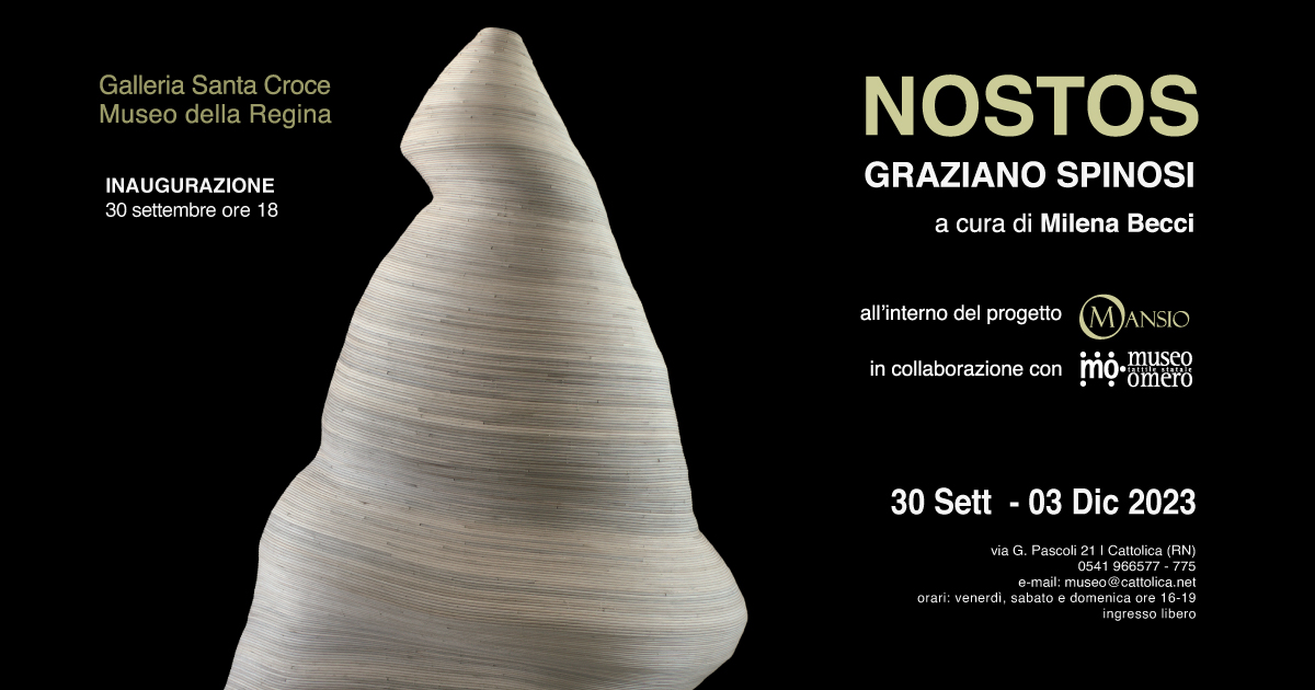 Si inaugura sabato 30 settembre alle ore 18, presso la Galleria Comunale Santa Croce, NOSTOS, personale di Graziano Spinosi a cura di Milena Becci. La mostra, terzo appuntamento del progetto MANSIO, è organizzata dai Servizi Culturali del Comune di Cattolica.
