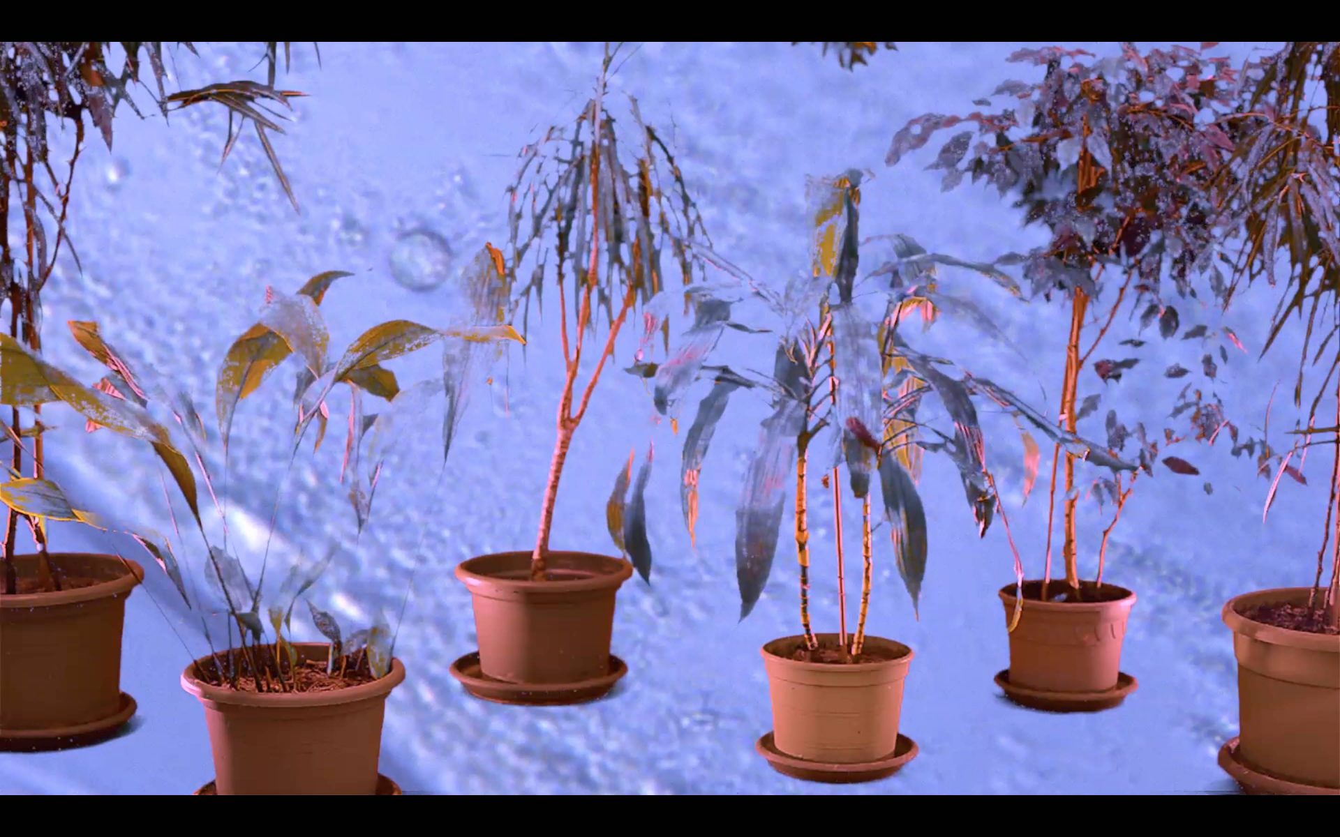 L’installazione sarà composta da una pianta-scultura, che integra dei circuiti elettrico-elettronici, e dal video Pool. Il video, creato con la tecnica di Chroma key, impiega un fondale green screen, la cui funzione è quella di estrapolare e soppiantare digitalmente il colore verde nell’inquadratura. Riprendere il verde vegetale, davanti al verde chroma, è un’operazione concettuale ed estetica che intende sfumare il concetto di limite nella visione animistica della natura. In Pool, le piante diventano protagoniste di una sorta di tableau vivant che restituisce loro il ruolo di esseri viventi e non più di meri oggetti scenografici. Sullo sfondo, nell’ambiente acquatico delle stesse piante, i microrganismi eseguono coreografie complesse, mostrando i ritmi accelerati della vita su una scala impercettibile ma fondamentale per l’ecosistema. Ingrandita a misura d’uomo, questa, diventa un’immagine-specchio di processi relazionali e spostamenti variabili.