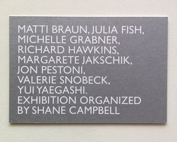 Federica Schiavo Gallery è lieta di presentare la collettiva organizzata dal gallerista di Chicago, Shane Campbell che include i lavori di Matti Braun, Julia Fish, Michelle Grabner, Richard Hawkins, Margarete Jakschik, Jon Pestoni, Valerie Snobeck e Yui Yaegashi.