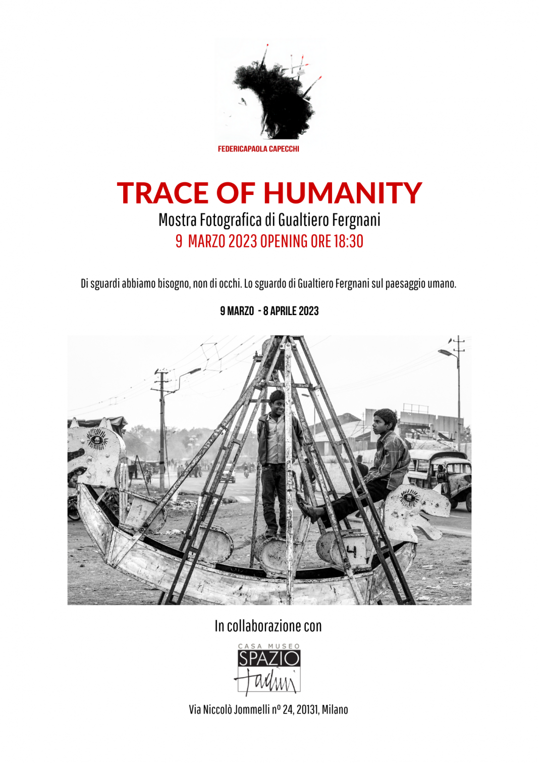 Giovedì 9 marzo 2023 inaugura la Mostra fotografica “Trace of Humanity” di Gualtiero Fergnani, parte del focus di marzo 2023 “L'uomo nel viaggio fotografico, gli incontri, le storie”.
