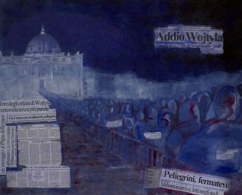 Scritte e ritagli di giornale rendono le opere molto vive perché costruite attorno a tematiche attuali (“Viviamo nella società dell’informazione” aveva dichiarato l’artista), dove si sottolinea l’importanza che rivestono le informazioni nella nostra società.