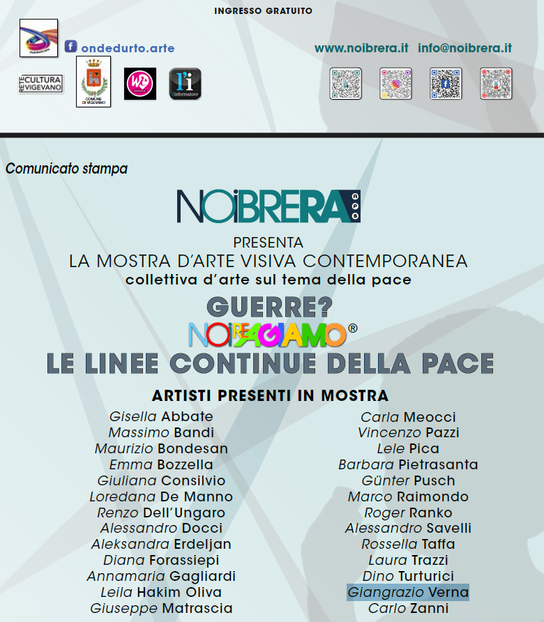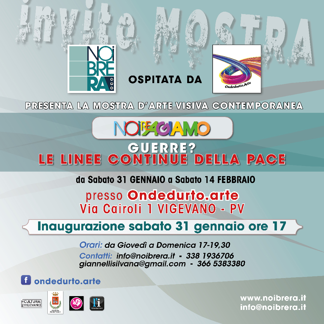 Ospitata questa volta dallo spazio artistico vigevanese Ondedurto Arte, L’associazione NOIBRERA APS dopo avere testimoniato già nel 2022 all’insorgere del conflitto Russia – Ucraina la sua contrarietà alla guerra con il progetto “L’Arte orizzonte di pace”, torna a stimolare la riflessione di essere umano e artista che vive quanto accade oggi nel mondo e che inevitabilmente fa i conti con quanto è accaduto nel passato: la guerra!