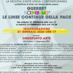 Seconda esposizione del progetto GUERRE? NOIreAGIAMO® LE LINEE CONTINUE DELLA PACE, collettiva di circa trenta opere che alimentano come linfa vitale un “totem”, catalizzatore di immagini e pensieri. Artisti e visitatori sono chiamati in prima persona a lasciare anche tu il tuo contributo alla pace.