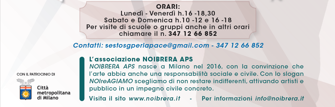 In collaborazione con il Presidio per la Pace di Sesto San Giovanni, l’associazione NOIBRERA APS, dopo avere testimoniato, già nel 2022 all’insorgere del conflitto Russia – Ucraina, la sua contrarietà alla guerra con il progetto “L'ARTE ORIZZONTE DI PACE”, torna a stimolare la riflessione di essere umano e artista che vive quanto accade oggi nel mondo e che inevitabilmente fa i conti con quanto è accaduto nel passato: la guerra!