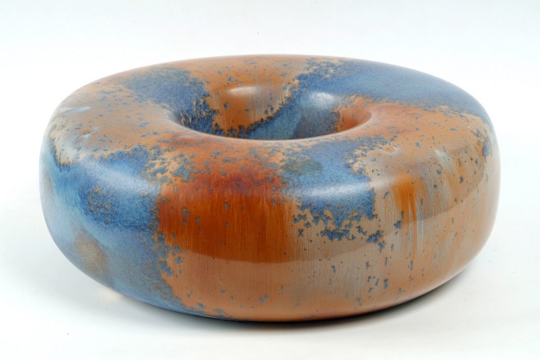 Accanto ai lavori a tutto tondo, sculture in terracotta smaltata e dipinta risalenti agli anni Trenta e Quaranta realizzate nel clima novecentesco della ripresa archeologizzante, soprattutto di impronta etrusca, si troveranno così rivestimenti a lustro e maioliche a grossi spessori di smalti con decorazioni e forme di gusto “primitivo” sull’esempio del maestro Guido Gambone risalenti al secondo dopoguerra. Il percorso espositivo prosegue con i grandi dischi decorativi invetriati con craquelure degli anni Cinquanta, tra cui spiccano le geometriche nature morte, con una nuova figurazione sulla linea dalle iconografie del Neo Cubismo, Astrattismo e Primitivismo, fino ad arrivare alle raffinate ceramiche che richiamano l’arte orientale di Cina, Corea e Giappone, vissute con il purismo formale del design molto in voga fra gli anni Sessanta e Settanta in Europa: una essenzialità che ha portato Tramonti a scegliere il grès, materia orientale i cui risultati non dipendono soltanto dalla cottura a elevata temperatura, ma anche dall’impasto.