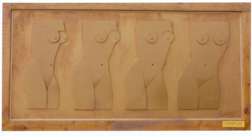 E’ esposta una sola opera, intitolata “Evoluzione di donna” – si tratta di un legno patinato del 2001 -che ben inquadra, con quattro tagli decisi, icastici riferimenti rivolti all’universo femminile.