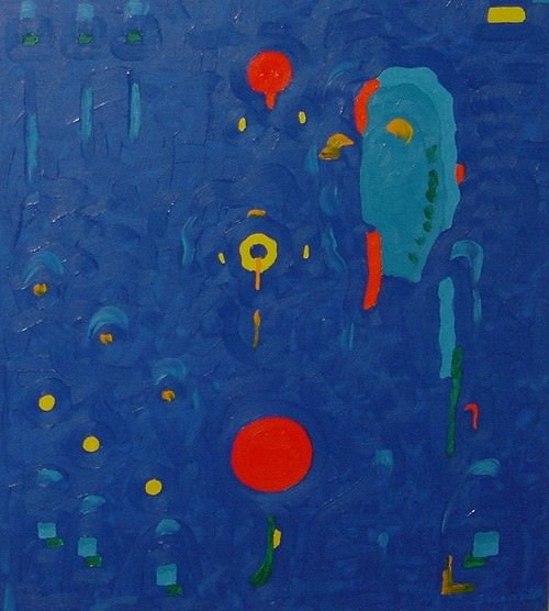 “Segni d'amore”, piccole forme pure, tasselli di colore netto e luminoso che compongono via via le sue tele. Come un poeta, le sue opere sono luoghi scritti, parole svelate ma mai dichiarate, sensazioni e testimonianze di un suo vissuto: punti, tracce, forme di colore che si collocano in luoghi precisi della tela.