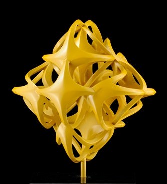 Iniziare a parlare delle sculture di Guido Moretti è come inoltrarsi in uno spazio, o meglio in un iperspazio, in cui la geometria svolge le sue trame producendo oggetti meravigliosi che, accanto ad un estremo rigore formale, ci fanno toccare prodotti estetici in cui sempre emerge una bellezza razionale.