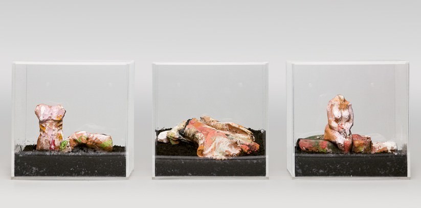 Disegni, dipinti eseguiti ad olio, bitume, tempera su carta, oltre che su tavola e su tela (anche di grandi dimensioni), e sculture in terracotta, poste all’interno di box in plexiglass e disposte in sequenza sulla parete, sono realizzazioni proposte in mostra da un giovane artista che sa sedurre con immediatezza espressiva e le cui immagini interagiscono con il codice sonoro, grazie alla diffusione di “Attese”, una composizione di suoni ed elaborazioni elettroacustiche creata appositamente per l’esposizione da Massimiliano Cerroni