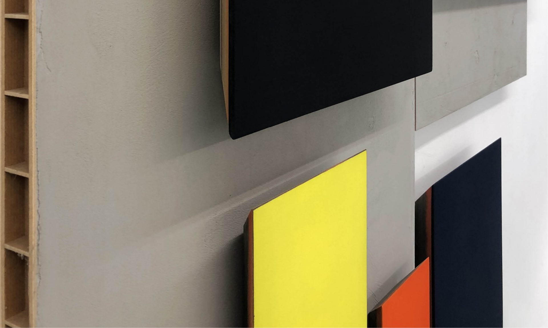 Al piano superiore della galleria viene presentata una installazione costituita da opere monocrome che disposte sulla parete, a distanza di intervalli calcolati, ne costruiscono e ridefiniscono le coordinate. Nella seconda sala del piano superiore sono invece esposte alcune opere degli anni Settanta costituite da due tavole in legno affiancate sulla parete, interamente ricoperte di pigmento nero.