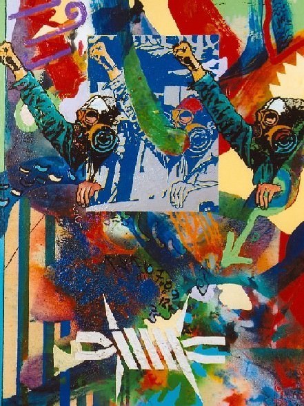 “Pittura serrata, carica di cromie nelle quali la gestualità mostra la propria funzionalità espressiva, l’impaginazione è giocata sull’andamento dinamico e struttivo, esplode e s’incarna: numeri e lettere, scritte, frecce, sovrapposizioni, velature consacrano un repertorio di interventi che fissano la flagranza del fare, travolgono nel senso di un flusso vitalistico dove il processo esecutivo coincide con l’immaginazione secondo regole e vicende che esigono risposte dal pubblico. Il ductus emerge nella propria riconoscibilità misurata, cellula costitutiva, in qualche caso si evidenziano campiture dominanti, andamenti o tracce prevalenti, l’impaginazione, l’equilibrio ed il suo superamento, sono sapientemente originati dal recupero di una capacità di averli già dominati nel momento realizzativo. Tensioni e soluzioni non casuali, ma così profondamente meditate da trasformare “l’urlo” espressionista nella sequenza costruttiva, testimonianza, monumento di un poderoso – organico quasi, nella fisicità immediata, ottica, dei risultati – coinvolgimento emotivo.”